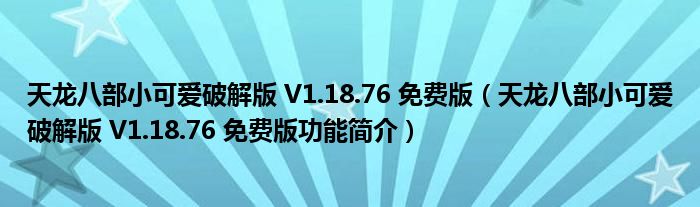 导读 大家好,关于天龙八部小可爱破解版 V1 18 76 免费版,天龙八部小可爱破解版 V1 18 76 免费版功能简介这个很多人还不知道,小勒来为大家解