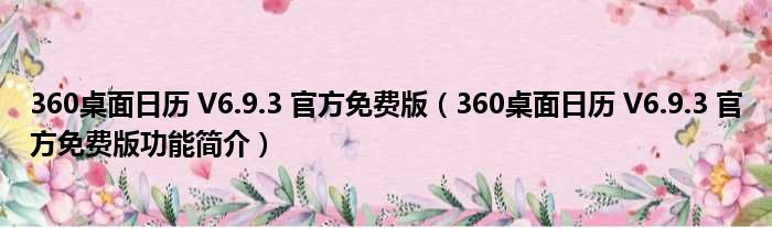 360桌面日历 V6.9.3 官方免费版(360桌面日历 V6.9.3 官方免费版功能简介)