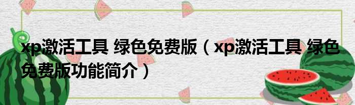 xp激活工具 绿色免费版(xp激活工具 绿色免费版功能简介)