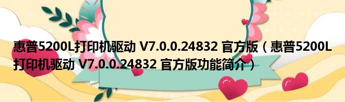 惠普5200L打印机驱动 V7.0.0.24832 官方版(惠普5200L打印机驱动 V7.0.0.24832 官方版功能简介)