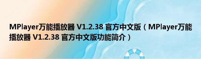 MPlayer万能播放器 V1.2.38 官方中文版(MPlayer万能播放器 V1.2.38 官方中文版功能简介)
