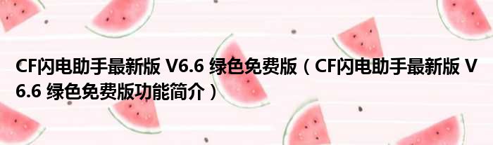 CF闪电助手最新版 V6.6 绿色免费版(CF闪电助手最新版 V6.6 绿色免费版功能简介)