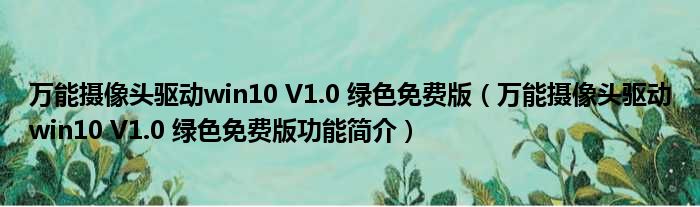 万能摄像头驱动win10 V1.0 绿色免费版(万能摄像头驱动win10 V1.0 绿色免费版功能简介)