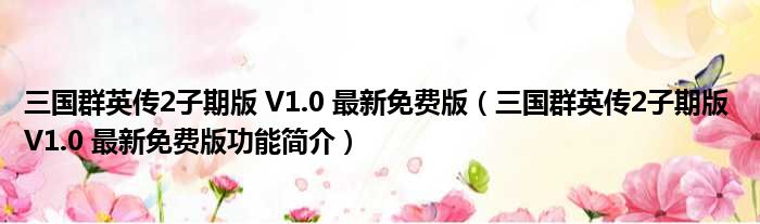 三国群英传2子期版 V1.0 最新免费版(三国群英传2子期版 V1.0 最新免费版功能简介)