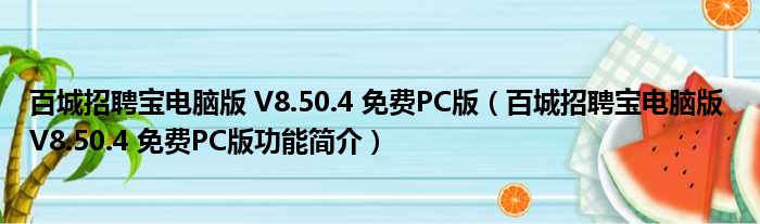 百城招聘宝电脑版 V8.50.4 免费PC版(百城招聘宝电脑版 V8.50.4 免费PC版功能简介)