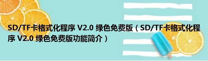 SD/TF卡格式化程序 V2.0 绿色免费版(SD/TF卡格式化程序 V2.0 绿色免费版功能简介)