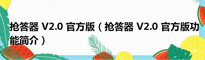 抢答器 V2.0 官方版(抢答器 V2.0 官方版功能简介)