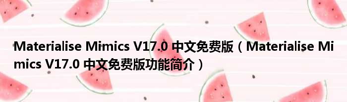 Materialise Mimics V17.0 中文免费版(Materialise Mimics V17.0 中文免费版功能简介)
