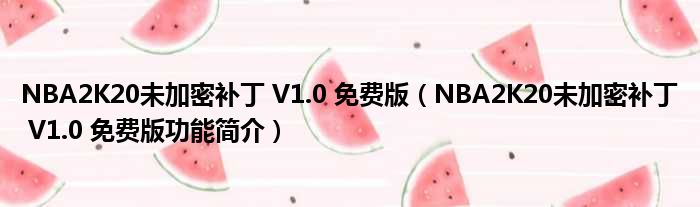 导读 大家好,关于NBA2K20未加密补丁 V1 0 免费版,NBA2K20未加密补丁 V1 0 免费版功能简介这个很多人还不知道,小勒来为大家解答以上的问题,