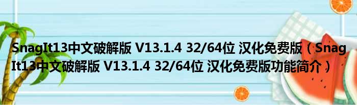 SnagIt13中文破解版 V13.1.4 32/64位 汉化免费版(SnagIt13中文破解版 V13.1.4 32/64位 汉化免费版功能简介)