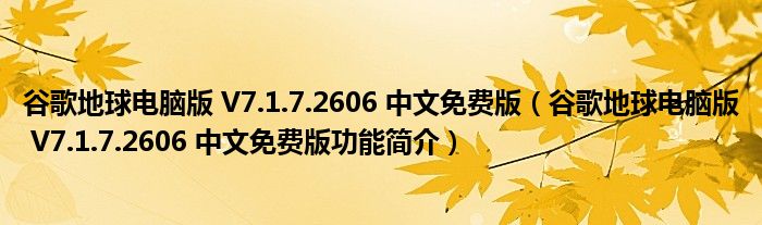 谷歌地球电脑版 V7.1.7.2606 中文免费版(谷歌地球电脑版 V7.1.7.2606 中文免费版功能简介)