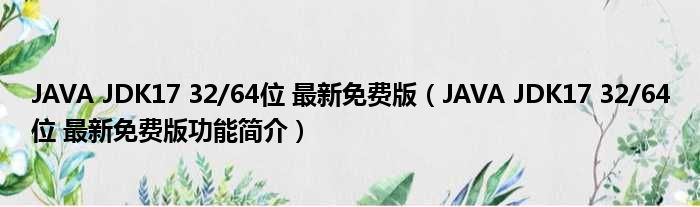 JAVA JDK17 32/64位 最新免费版(JAVA JDK17 32/64位 最新免费版功能简介)