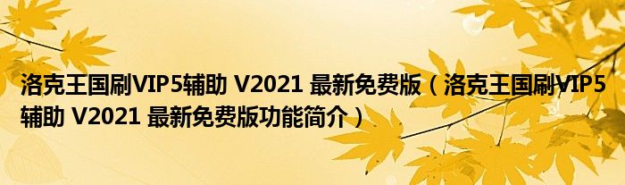 导读 大家好,关于洛克王国刷VIP5辅助 V2021 最新免费版,洛克王国刷VIP5辅助 V2021 最新免费版功能简介这个很多人还不知道,小勒来为大家解答