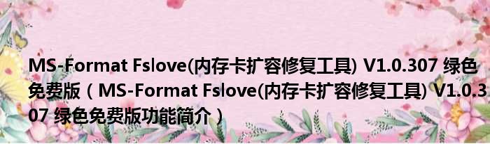 MS-Format Fslove(内存卡扩容修复工具) V1.0.307 绿色免费版(MS-Format Fslove(内存卡扩容修复工具) V1.0.307 绿色免费版功能简介)