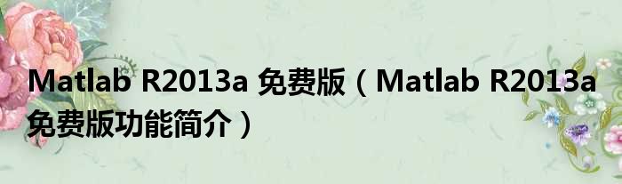 Matlab R2013a 免费版(Matlab R2013a 免费版功能简介)