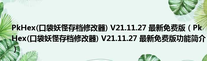 PkHex(口袋妖怪存档修改器) V21.11.27 最新免费版(PkHex(口袋妖怪存档修改器) V21.11.27 最新免费版功能简介)