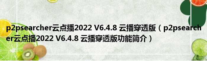 p2psearcher云点播2022 V6.4.8 云播穿透版(p2psearcher云点播2022 V6.4.8 云播穿透版功能简介)