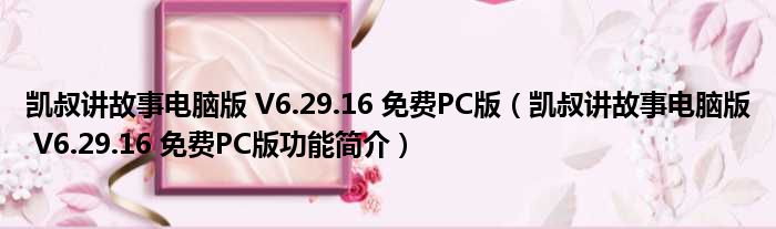 凯叔讲故事电脑版 V6.29.16 免费PC版(凯叔讲故事电脑版 V6.29.16 免费PC版功能简介)