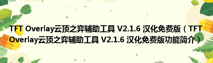 TFT Overlay云顶之弈辅助工具 V2.1.6 汉化免费版(TFT Overlay云顶之弈辅助工具 V2.1.6 汉化免费版功能简介)