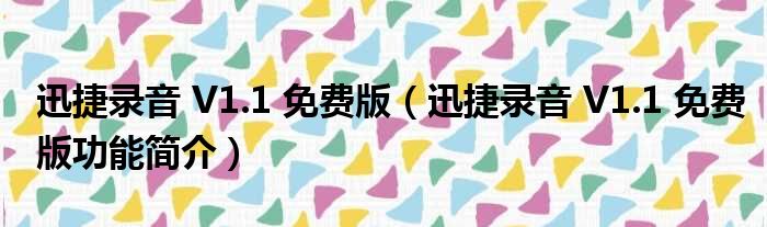 迅捷录音 V1.1 免费版(迅捷录音 V1.1 免费版功能简介)