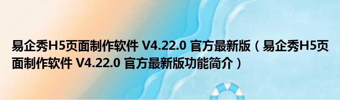 导读 大家好,关于易企秀H5页面制作软件 V4 22 0 官方最新版,易企秀H5页面制作软件 V4 22 0 官方最新版功能简介这个很多人还不知道,小勒来为