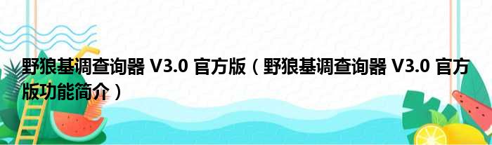 野狼基调查询器 V3.0 官方版(野狼基调查询器 V3.0 官方版功能简介)