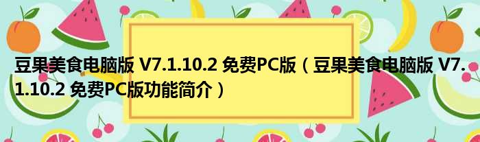 豆果美食电脑版 V7.1.10.2 免费PC版(豆果美食电脑版 V7.1.10.2 免费PC版功能简介)