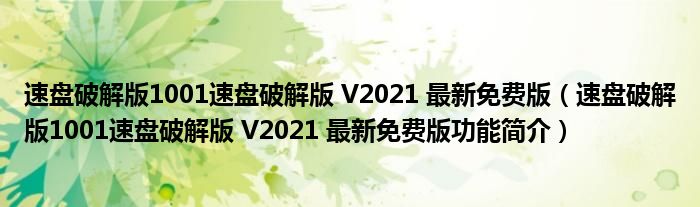 速盘破解版1001速盘破解版 V2021 最新免费版(速盘破解版1001速盘破解版 V2021 最新免费版功能简介)