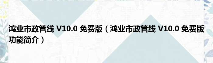鸿业市政管线 V10.0 免费版(鸿业市政管线 V10.0 免费版功能简介)