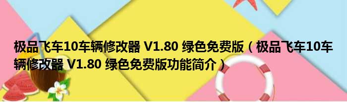极品飞车10车辆修改器 V1.80 绿色免费版(极品飞车10车辆修改器 V1.80 绿色免费版功能简介)