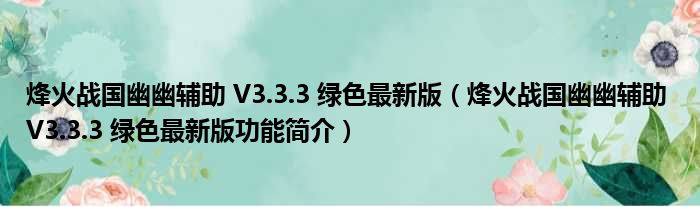 烽火战国幽幽辅助 V3.3.3 绿色最新版(烽火战国幽幽辅助 V3.3.3 绿色最新版功能简介)