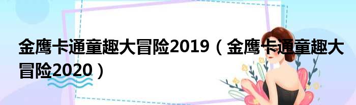 导读 大家好,今天小六子来为大家解答以下的问题,关于金鹰卡通童趣大冒险2019,金鹰卡通童趣大冒险2020这个很多人还不知道,现在让我们一起来看