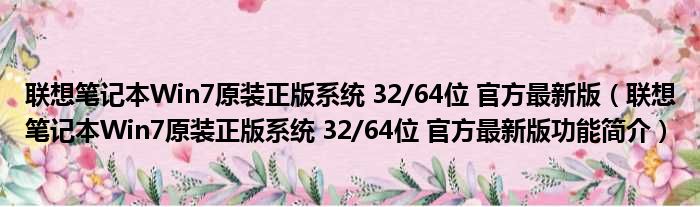 联想笔记本Win7原装正版系统 32/64位 官方最新版(联想笔记本Win7原装正版系统 32/64位 官方最新版功能简介)
