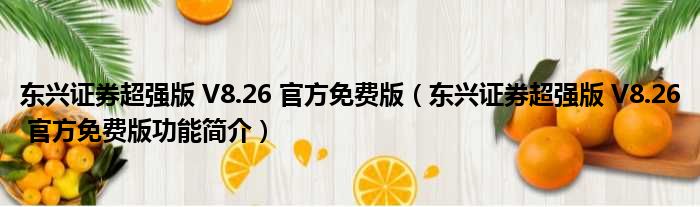 东兴证券超强版 V8.26 官方免费版(东兴证券超强版 V8.26 官方免费版功能简介)