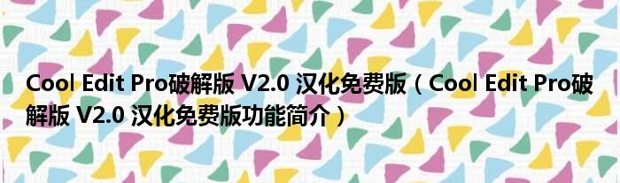 Cool Edit Pro破解版 V2.0 汉化免费版(Cool Edit Pro破解版 V2.0 汉化免费版功能简介)