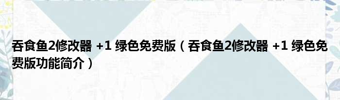 吞食鱼2修改器 +1 绿色免费版(吞食鱼2修改器 +1 绿色免费版功能简介)