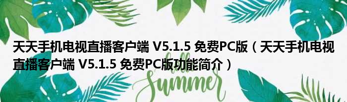 天天手机电视直播客户端 V5.1.5 免费PC版(天天手机电视直播客户端 V5.1.5 免费PC版功能简介)