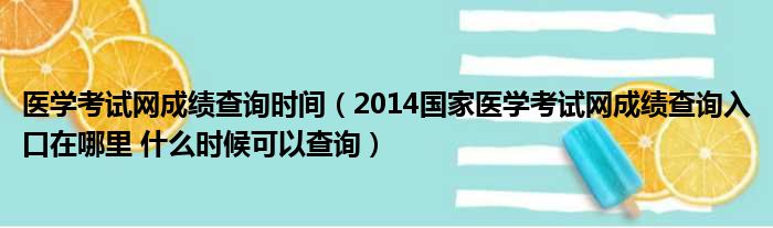 医学考试网成绩查询时间(2014国家医学考试网成绩查询入口在哪里 什么时候可以查询)