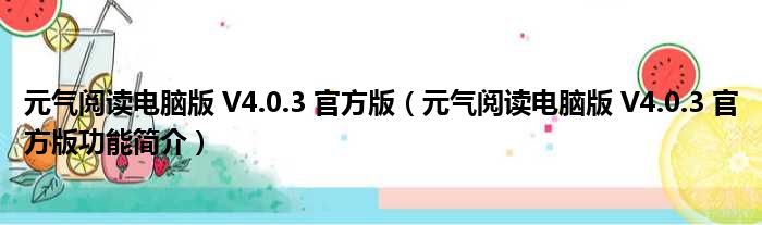 元气阅读电脑版 V4.0.3 官方版(元气阅读电脑版 V4.0.3 官方版功能简介)