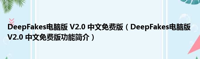 DeepFakes电脑版 V2.0 中文免费版(DeepFakes电脑版 V2.0 中文免费版功能简介)