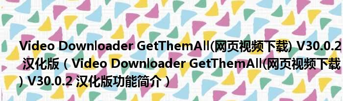 Video Downloader GetThemAll(网页视频下载) V30.0.2 汉化版(Video Downloader GetThemAll(网页视频下载) V30.0.2 汉化版功能简介)
