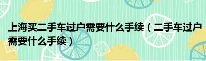 上海买二手车过户需要什么手续(二手车过户需要什么手续)