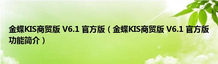 金蝶KIS商贸版 V6.1 官方版(金蝶KIS商贸版 V6.1 官方版功能简介)