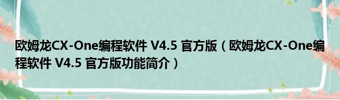 欧姆龙CX-One编程软件 V4.5 官方版(欧姆龙CX-One编程软件 V4.5 官方版功能简介)