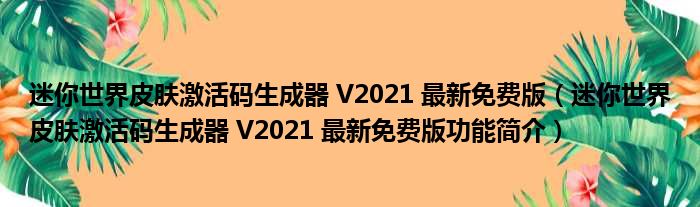 迷你世界皮肤激活码生成器 V2021 最新免费版(迷你世界皮肤激活码生成器 V2021 最新免费版功能简介)