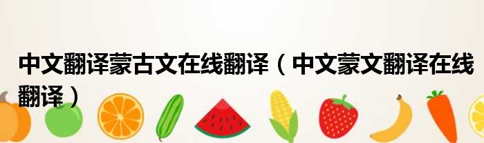 中文翻译蒙古文在线翻译(中文蒙文翻译在线翻译)