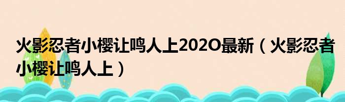 大家好,今天小六子来为大家解答以下的问题,关于火影忍者小樱让鸣人上202O最新,火影忍者小樱让鸣人上这个很多人还不知道,现在让我们一起来看看吧!