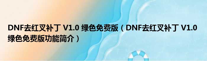 导读 大家好,关于DNF去红叉补丁 V1 0 绿色免费版,DNF去红叉补丁 V1 0 绿色免费版功能简介这个很多人还不知道,小勒来为大家解答以上的问题,
