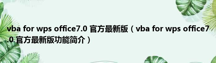 vba for wps office7.0 官方最新版(vba for wps office7.0 官方最新版功能简介)