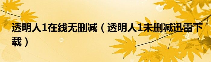 导读 大家好,今天小六子来为大家解答以下的问题,关于透明人1在线无删减,透明人1未删减迅雷下载这个很多人还不知道,现在让我们一起来看看吧!1